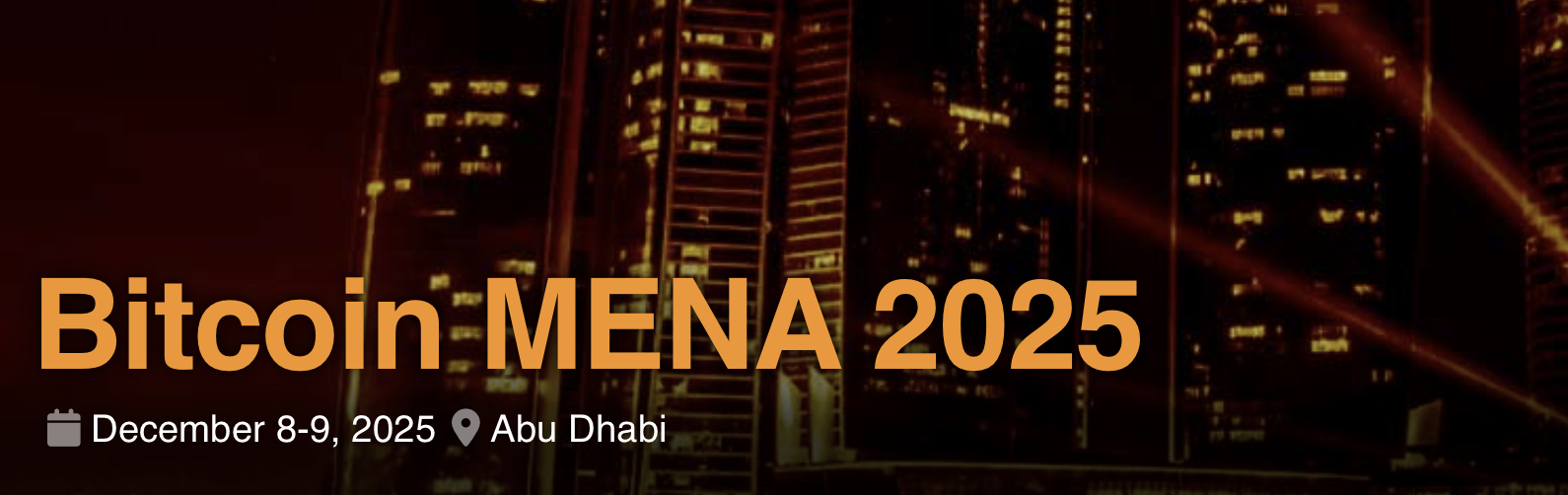 The Bitcoin MENA Conference will take place in Abu Dhabi Dec 8th and 9th 2026 in the UAE and will feature many of the top Bitcoin speakers and innovators in the industry