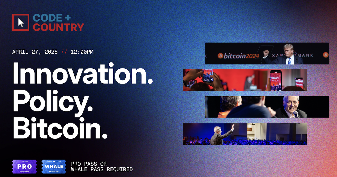 Code + Country is an exclusive Pro Day program within the Bitcoin 2026 conference, designed to bring together policymakers, industry executives, Bitcoin pioneers, and thought leaders for high-level discussions on the intersection of Bitcoin, public policy, AI, energy, privacy, economic freedom, and national security.